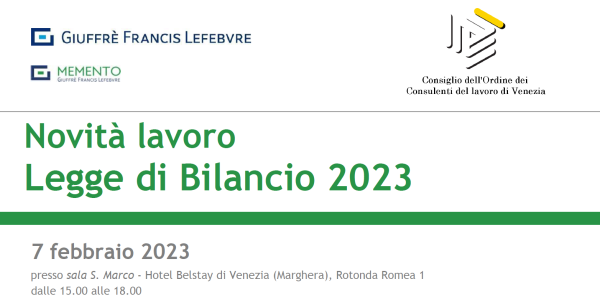 L’Ordine dei Consulenti del lavoro di Venezia, in collaborazione con Giuffré Francis Lefebvre-Memento, ha organizzato il prossimo Martedì 07 febbraio 2023, dalle ore 15.00 alle ore 18.00, un convegno...
