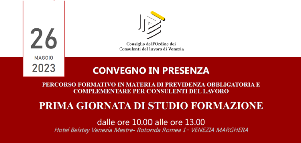 DaadminGiugno 7, 2023L’Ordine dei Consulenti del lavoro di Venezia ha organizzato il prossimo venerdì 26 maggio 2023, dalle ore 09.30 alle ore 12.30, la prima giornata di studio...